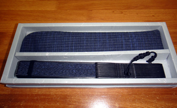 とても丁寧な梱包で届きました(感謝!)。エアパッキン(プチプチ)を外すと、和紙風の高級感のある上品な箱に扇子と扇子袋が入っていました。