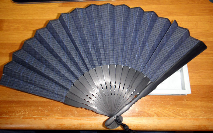 写真で見ていたとおり、扇骨はがっちりとしていてボリューム感があって骨太。また扇面の生地も触ってみると、肉厚でとても丈夫そうです。扇子を開閉した感触は新品ということもあるかもしれませんが、スムーズでありながら、扇面の生地がシッカリとした感じが手に伝わります。なかなかいい感じです。。
